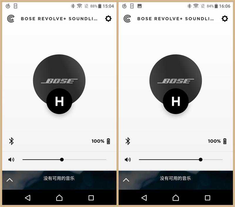 为了测试BOSESoundLinkRevolve+的续航效果,这里选择从100%电量开始,让音箱以70%的音量连续播放音乐,1个小时后,笔者发现其电量依然保持在100%……