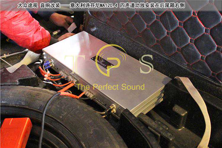 功放安装在后尾箱,把备胎右侧的工具槽泡棉切掉些,安装功放非常恰当!
