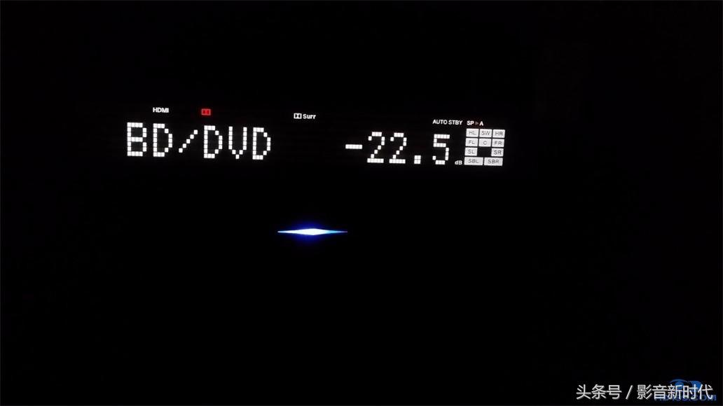 7.功放自身的显示面板显示的内容大大缩减,只显示必要的信息(如输入通道和音量),以前有的输入模式,听音模式都不显示(只有在用i键显示信息时短暂显示),喇叭通道显示从原来左边移到了右边。