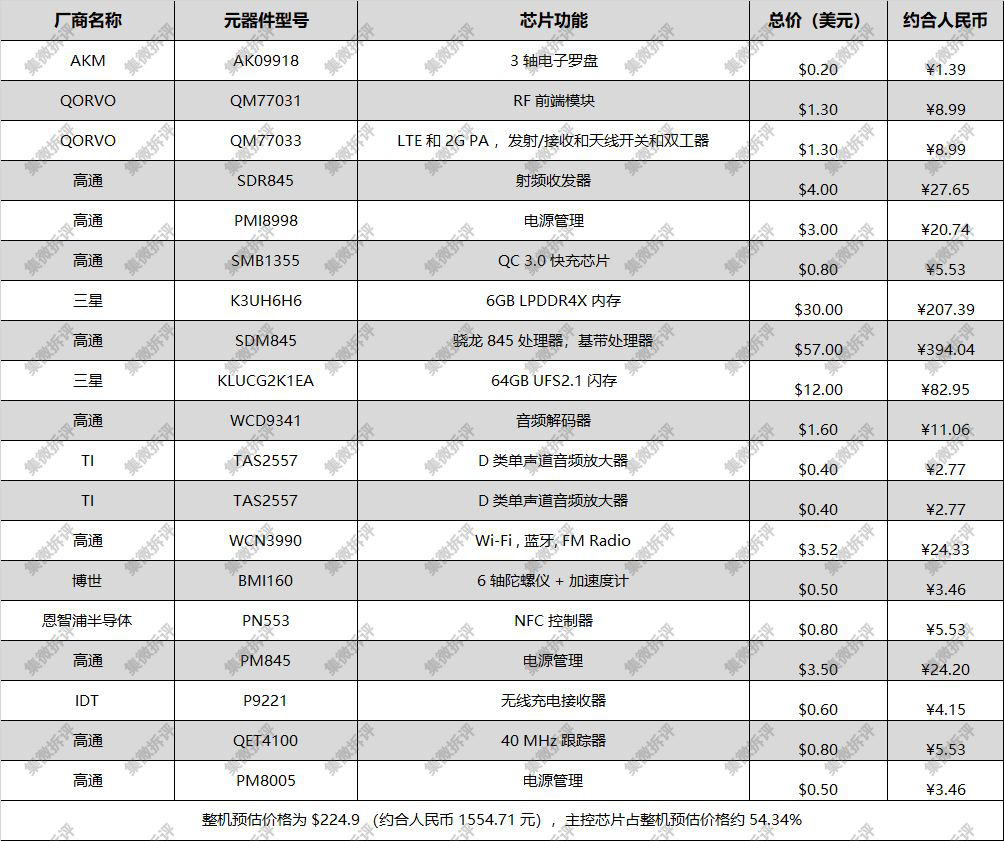 红色:Qualcomm-SDM845+Samsung-K3UH6H6-骁龙84564位八核处理器+6GBLPDDR4XRAM芯片