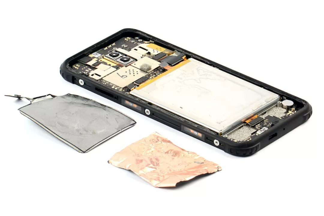 为了达致更好的抗冲击效果,AGMX3采用了PC+ABS作为后盖的主要材质。后盖用防水泡棉胶与机身固定,加热手机边缘并取下后盖后可以发现后盖的上半部分贴着一层石墨片帮助散热。