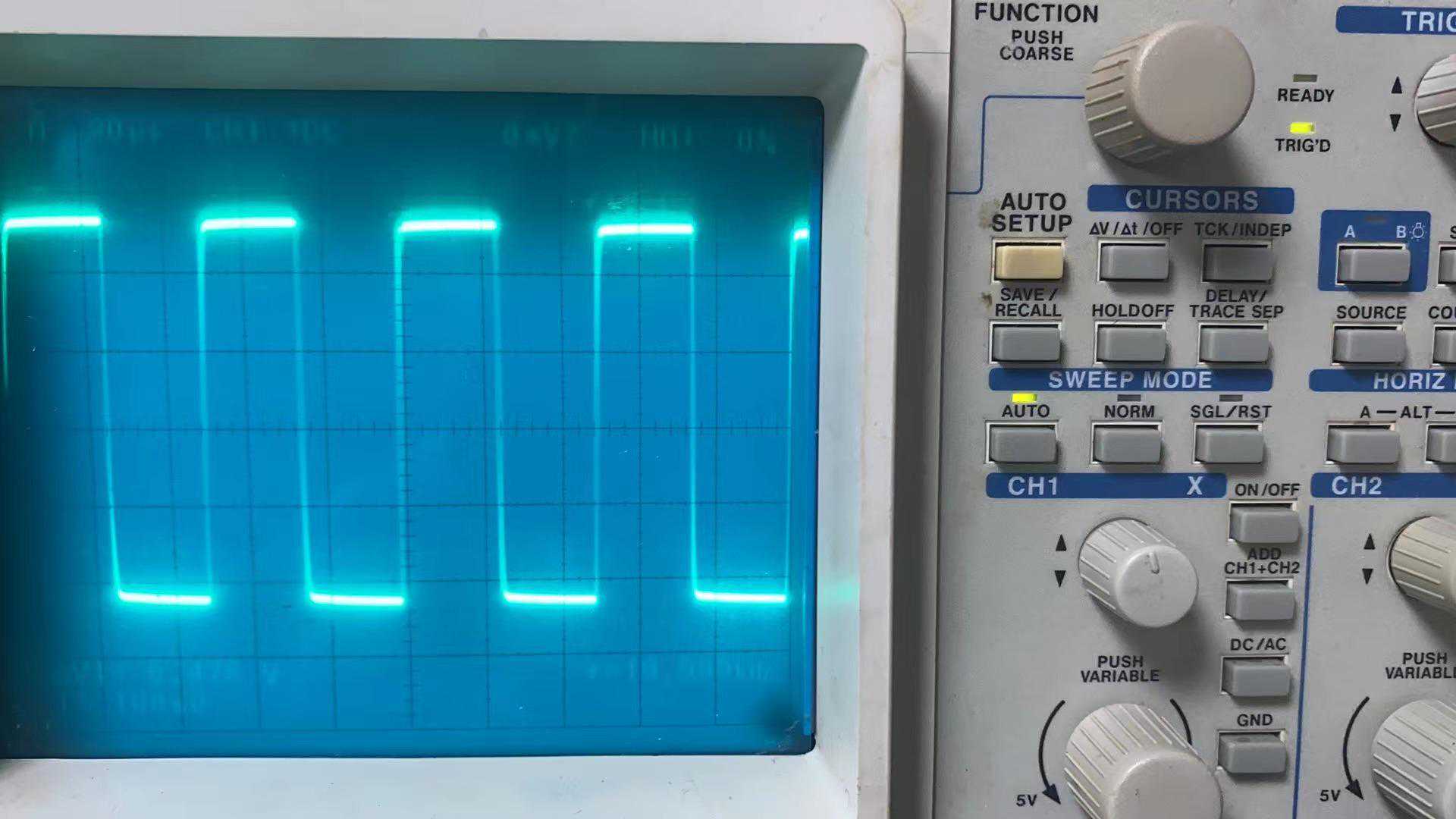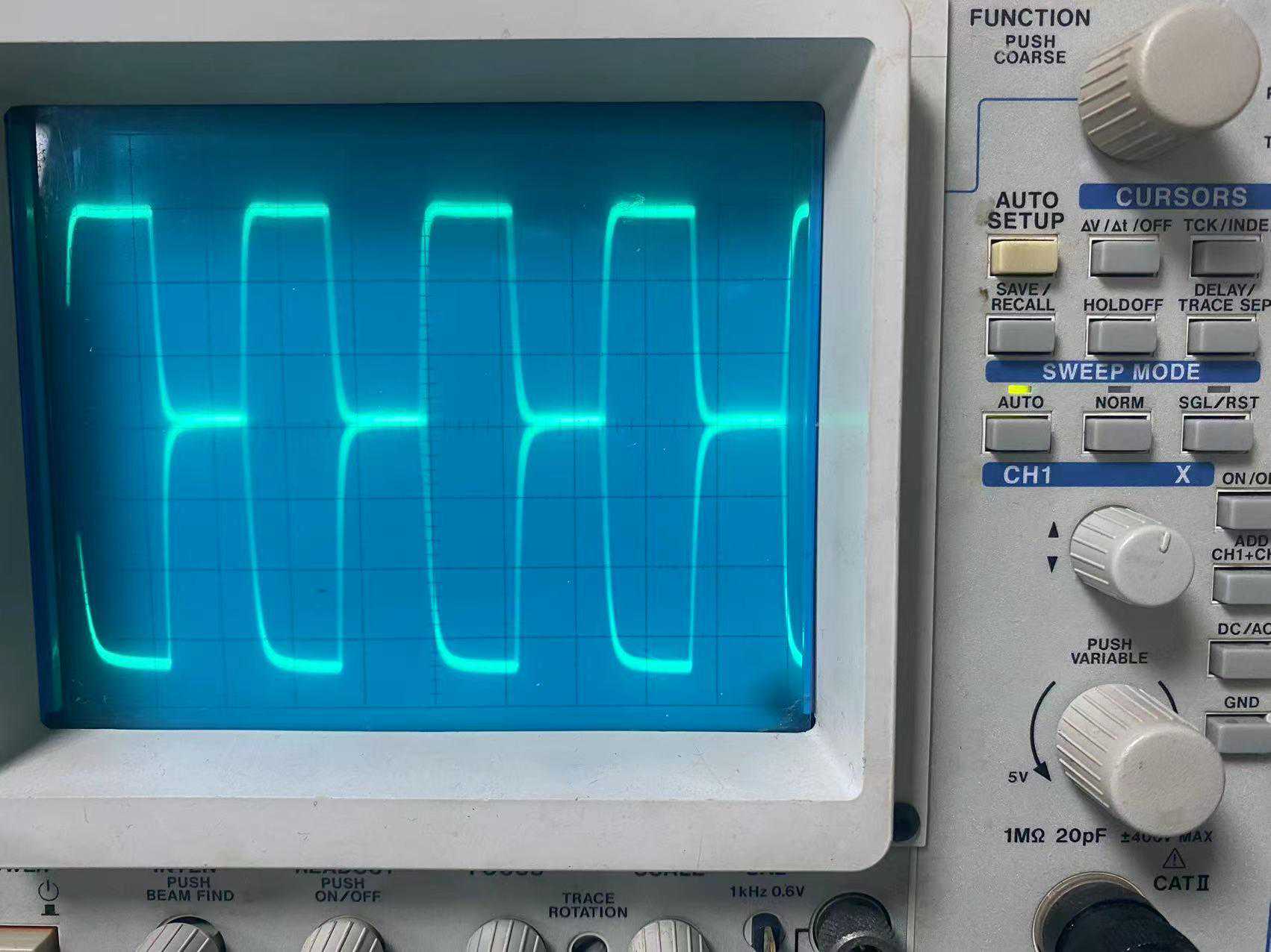 修正前(输出摆幅明显不一致,而且正负方波不对称)