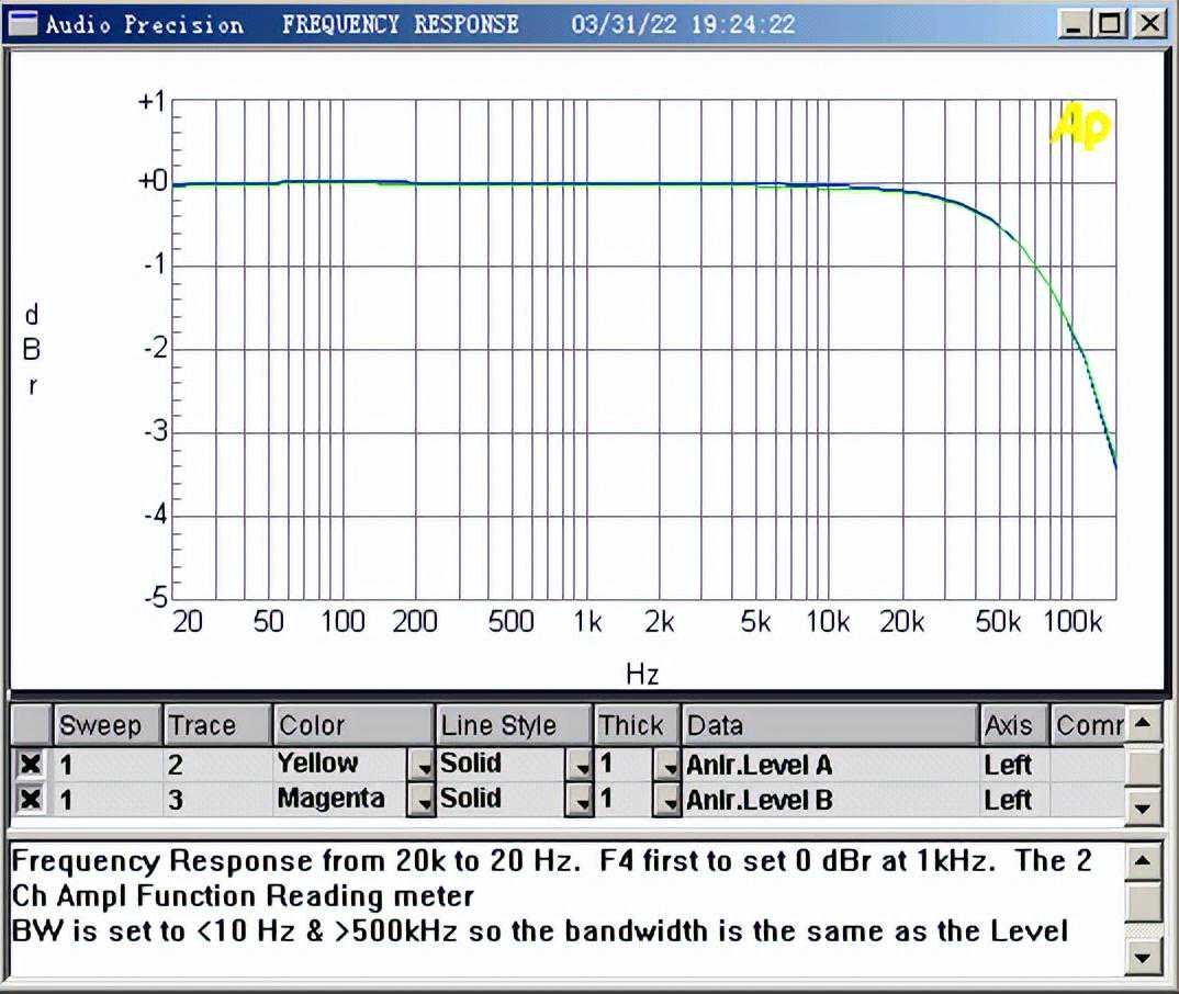 很多人说指标好未必声音好,这个也说一句好听指标就一定不错。当然不能说我这个指标比其他品牌器材好,我只是以FM原装机及官网给出指标进行测试对比。其实其他品牌很多指标都非常高例如宝达21504Ω负载THD+N做到0.00036%。