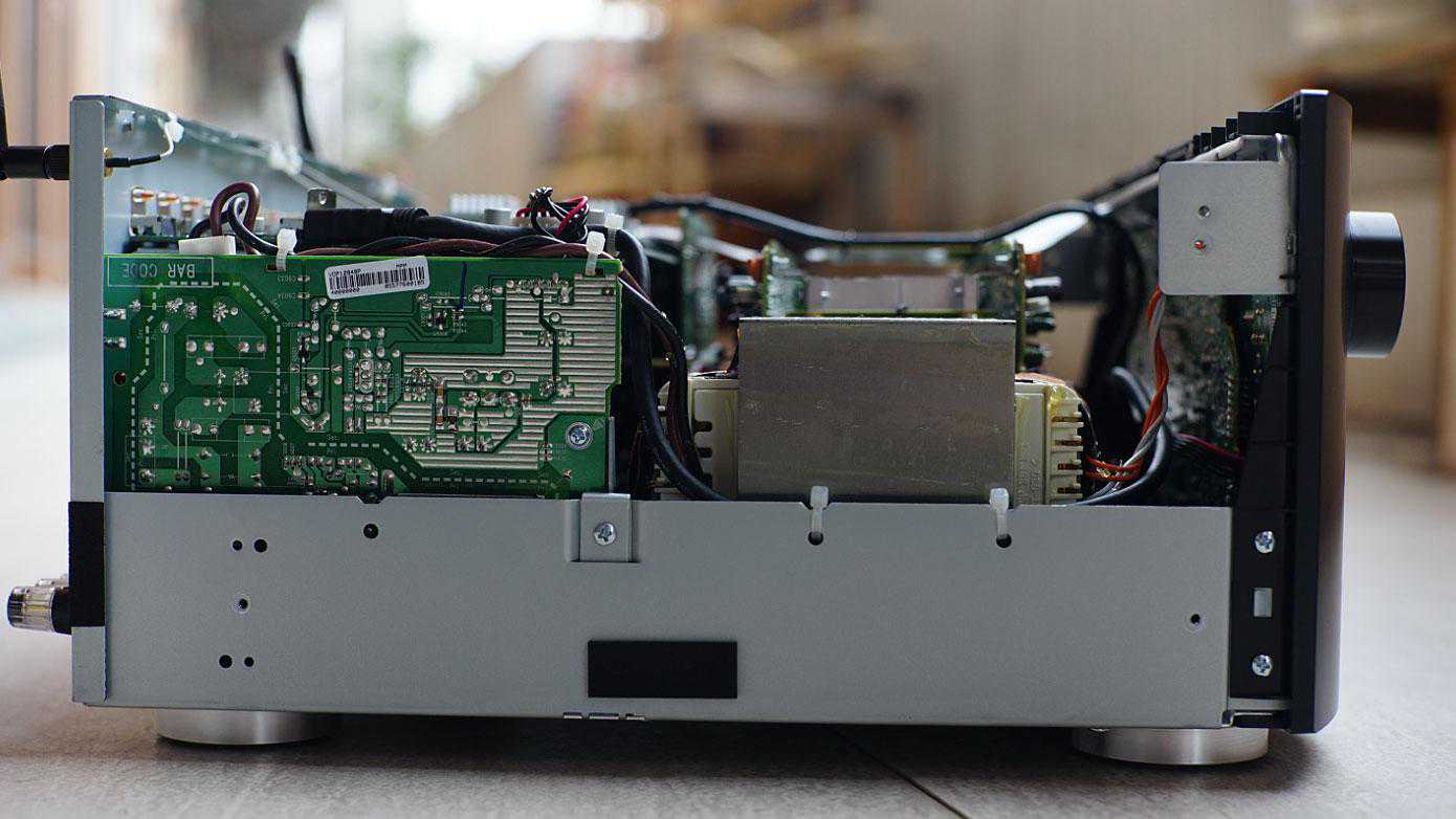 这个结构我们已经非常熟悉,天龙马兰士旗下的功放,除了各自的合并机旗舰会用中置电源结构,其它的产品都是把电压器放在左边,右边是放大电路。