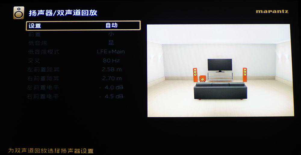 对针对立体声回放,实际上就是2.1模式,可以有自动和手动两种设置。对于百分之九十的用户,我建议是别瞎搞,让功放自己搞定。
