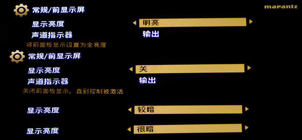 而现在家庭影院设备,一般来讲,都不要需要电工黑胶布这种东西——因为现在的AV功放可以设置前显示面板的亮度。像SR7013就有三级亮度和直接关掉这四种选项。
