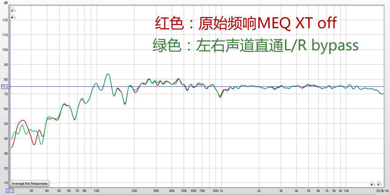 测试基标声压中75dB,可以明显看出Reference模式有效的对低频部分的驻波进行了修正,但对于中高频并没有进行粗暴的干预。