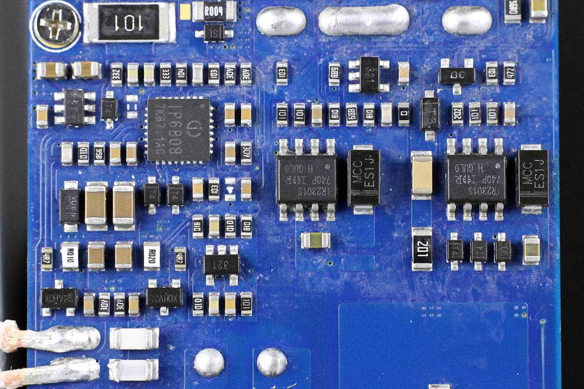 主板背面一侧设有DC和USB-C口输入输出保护管,USB-A口降压输出转换器和协议芯片。