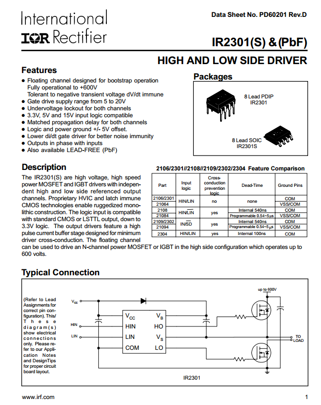 英飞凌IR2301S,用于逆变器调制信号驱动,输出交流。