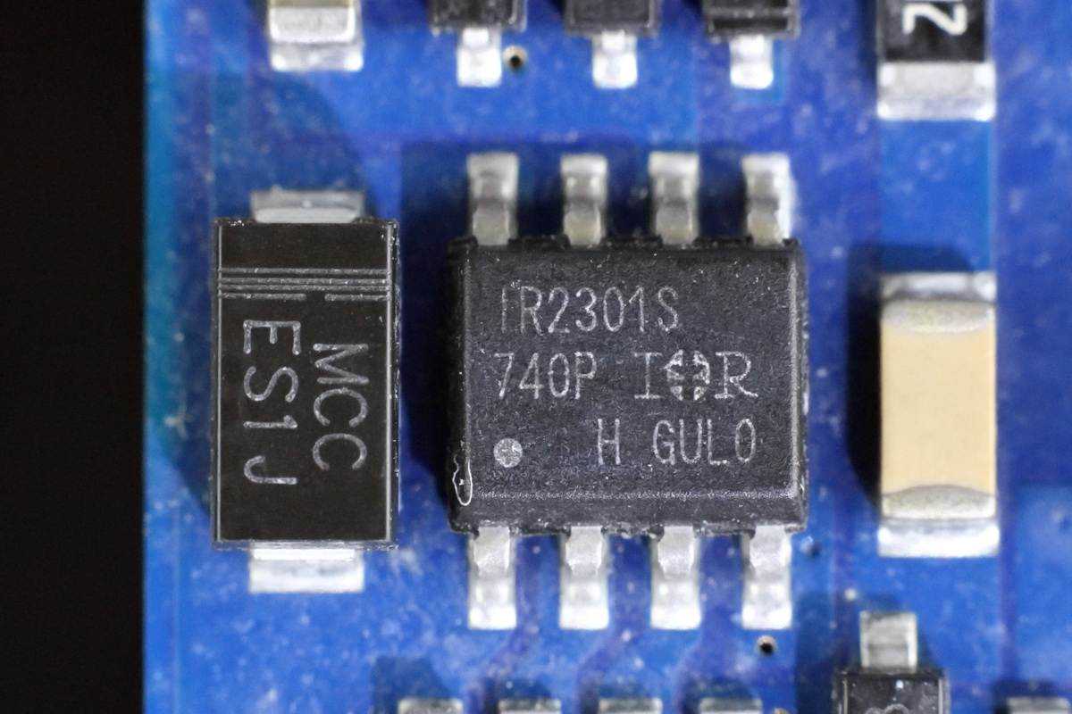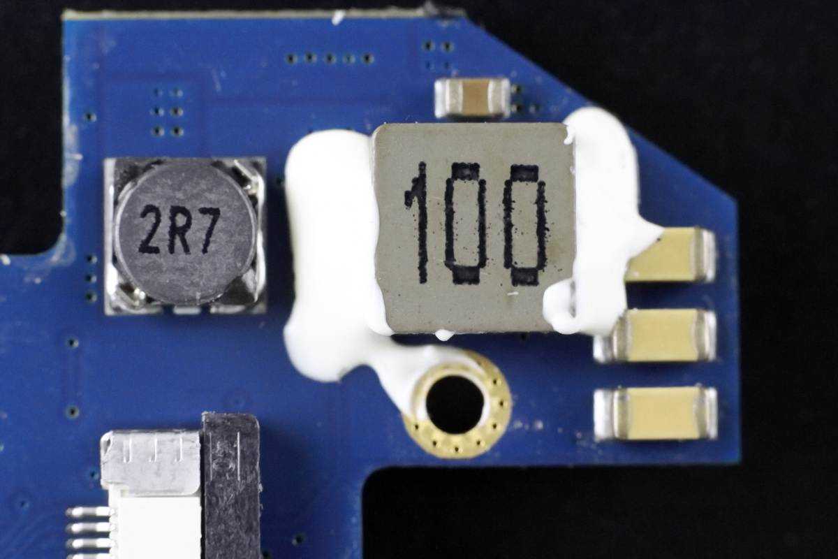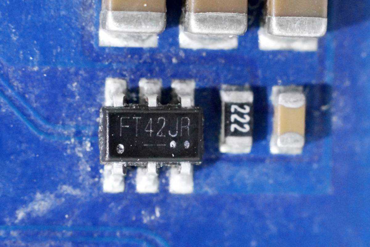 两颗NPO谐振电容特写和无线充电功率管特写,无线充电功率管采用SOT23封装。