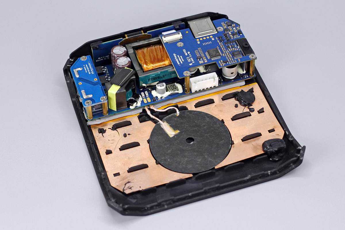 Omni20+充电宝拥有DC、USB-A/C接口以及AC输出插口。其中DC、USB-C口均支持双向快充,最大功率可达100W。AC插口支持100W交流输出,再一对比此前拆解的储能电源的逆变器模块,虽然功率比不上,但能在如此小的多合一充电宝里塞入逆变输出电路,着实让人觉得不可思议。那下面就来看看这款产品的内部是如何设计的。