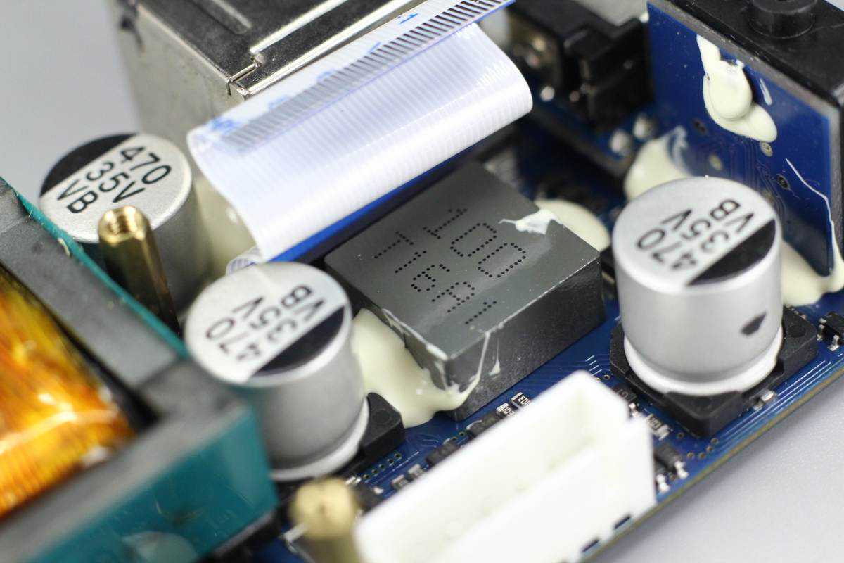 旁边的合金电感打胶固定,用于DC和C口输入输出升降压。