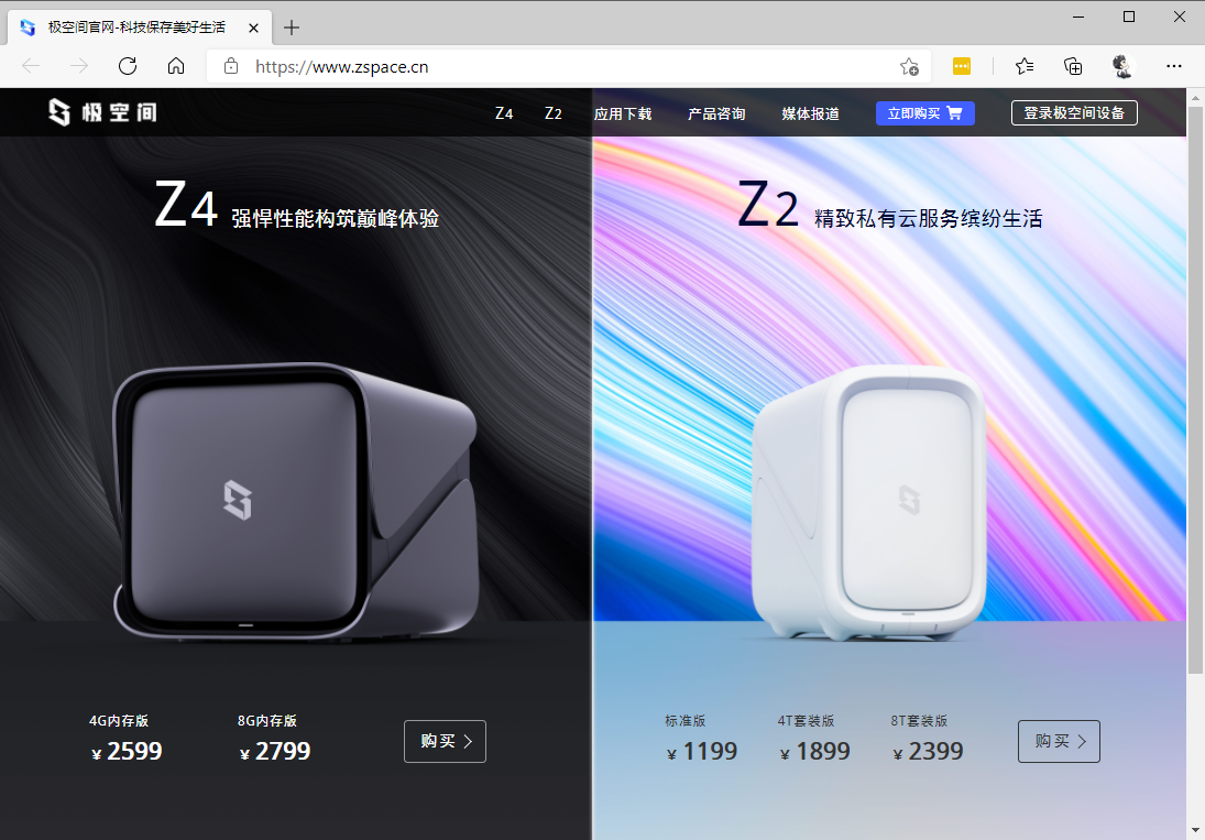 目前极空间的官网上资料并不多,主要介绍的就是主打的两款产品: