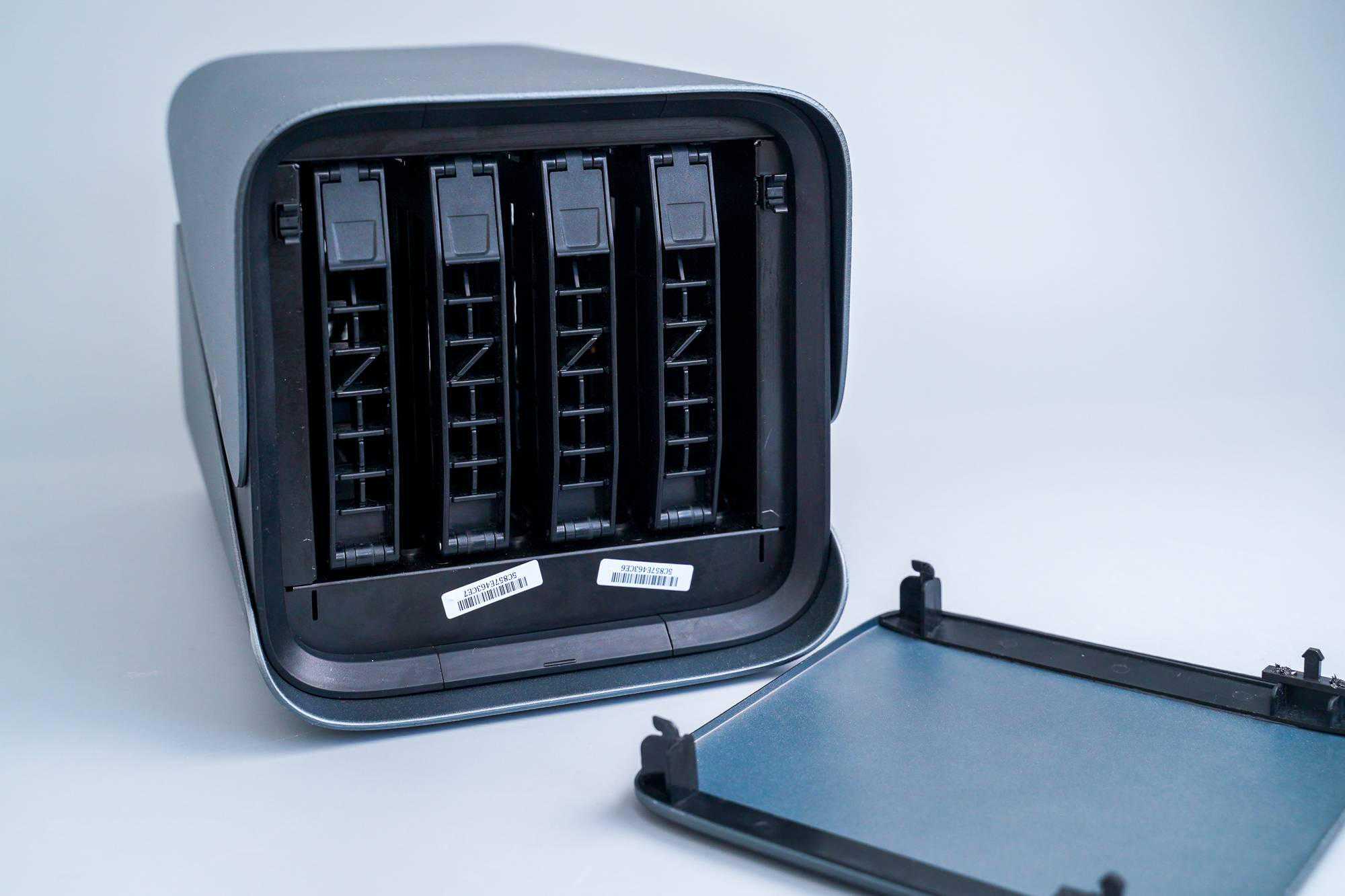 这个温度表现,得益于极空间Z4背后较大的散热风扇,以及每块硬盘之间都有很好的散热间隙: