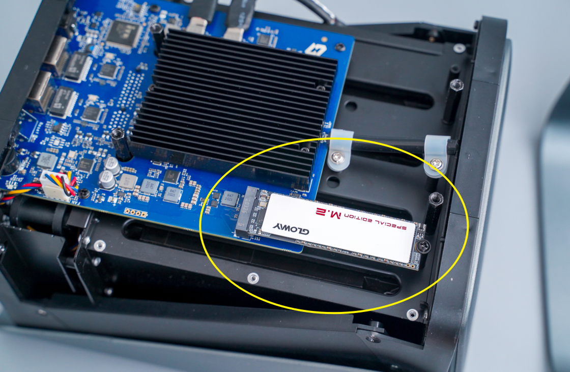 有2个2.5G的网口,并且还支持加装一条固态硬盘作为缓存使用: