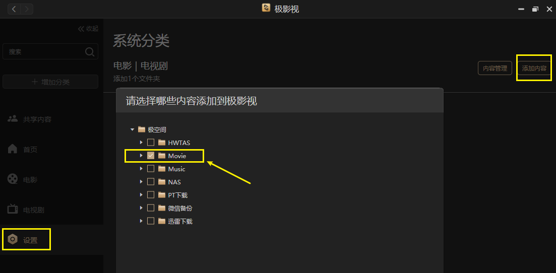 3、用极空间的迅雷,可以远程下载电影到NAS中: