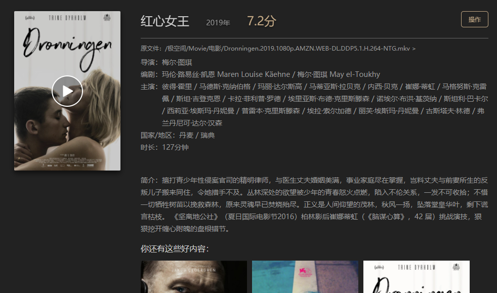 它也是我见过刮削电影资源最快的NAS软件,而且信息匹配非常的强悍,播放电影也特别方便:
