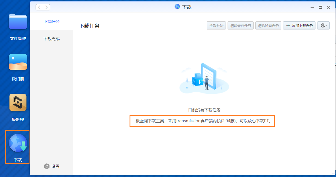 极空间的内置的下载工具,里面采用了版本的内核,这意味着,它是一个挂PT的利器: