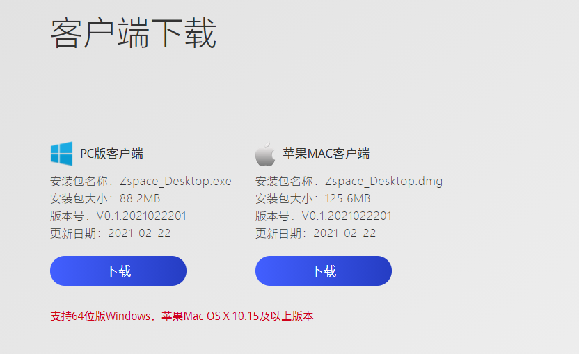 1、在极空间的官网中,我们可以下载到PC版的客户端,目前已经支持WIN系统和MAC系统: