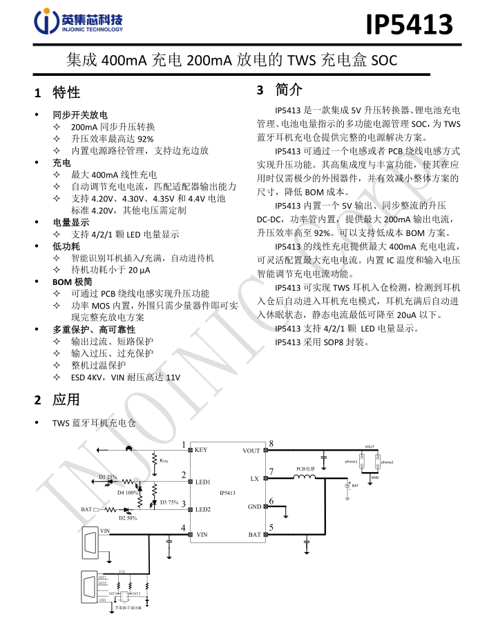 充电盒电源管理芯片虽然相对于传统设备来说充放电功率并不大,但对于TWS耳机这种对便携性有极高要求的产品,对其低功耗、高耐压、高集成度等功能均有着相对较高的要求。