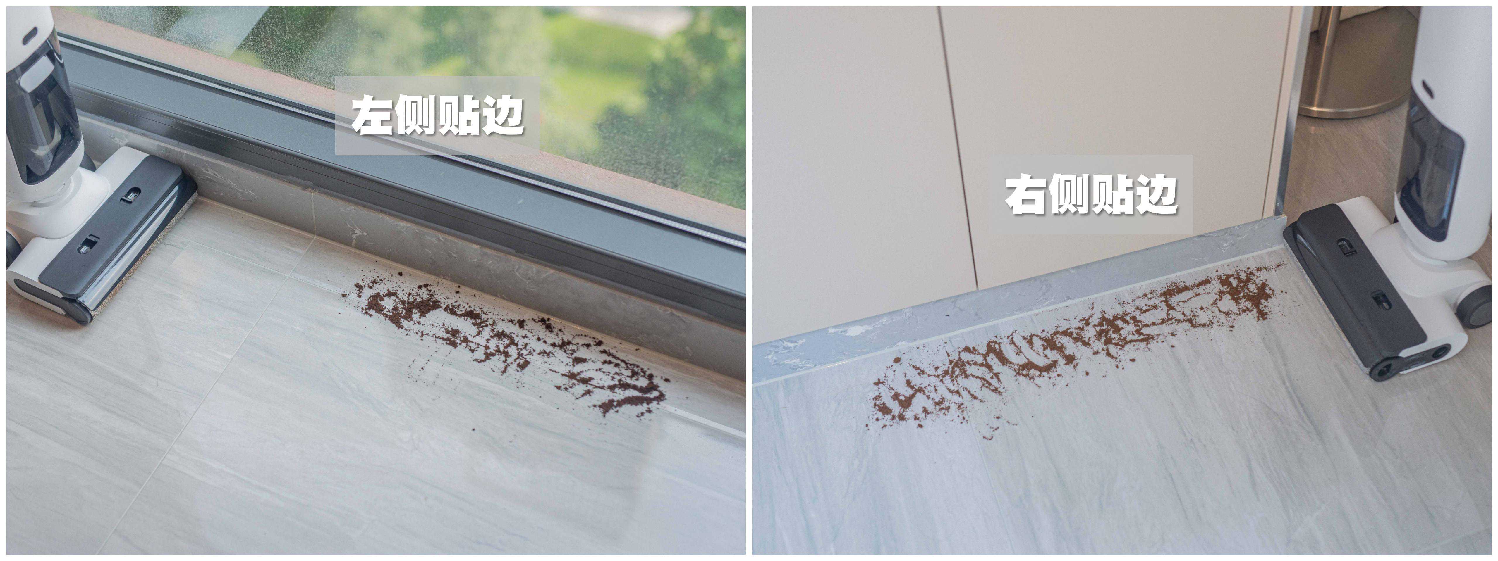 4、双贴边清洁:作为主力清洁家电,日常清洁的时候难免会遇到各种边缘。这里也对顺造Z30双贴边滚刷的实际表现进行评测:
