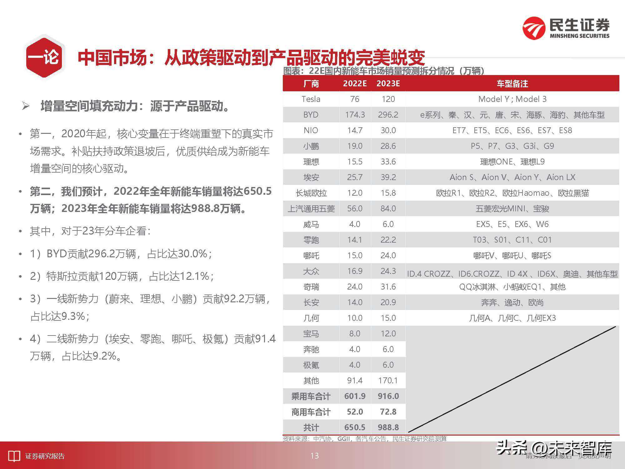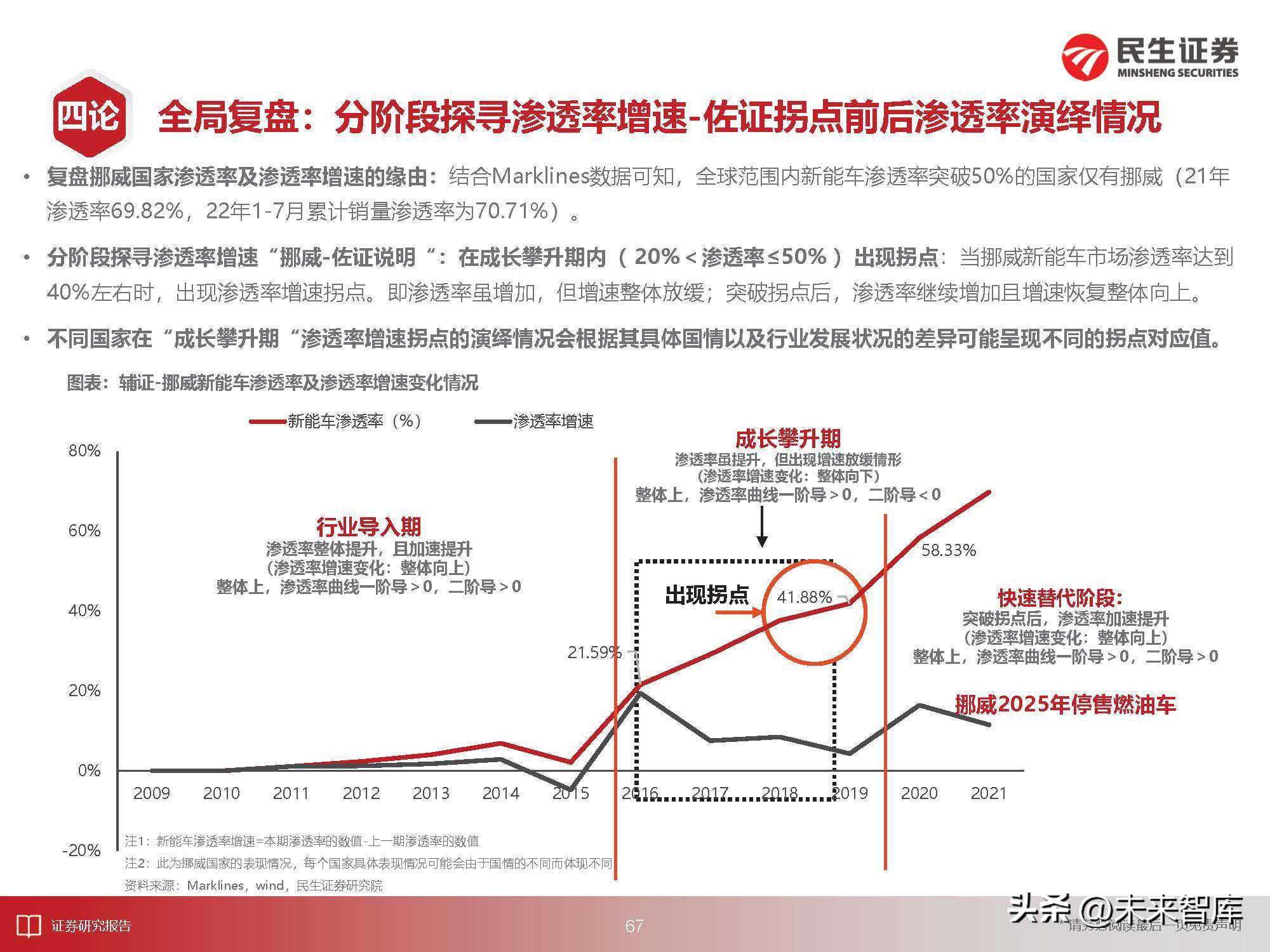 目前仍在山脚,后程仍需发力市场担忧:主要体现在对新能车未来增速的不确定性,市场普遍认为新能车市场的渗透率天花板不到50%,目前的高增速是以提前“透支”未来增速为代价的。
