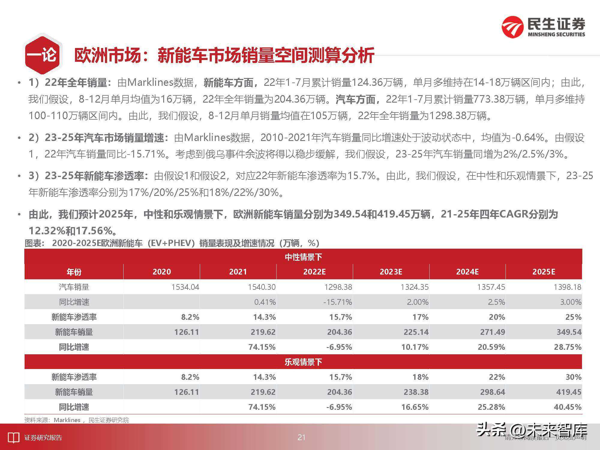 2)中国市场:政策端缓冲足够,产品驱动马力全开。综合中汽协和Marklines数据,21年中国新能车市场渗透率13.40%。22年1-7月新能车累计销量对应的渗透率为22.01%。