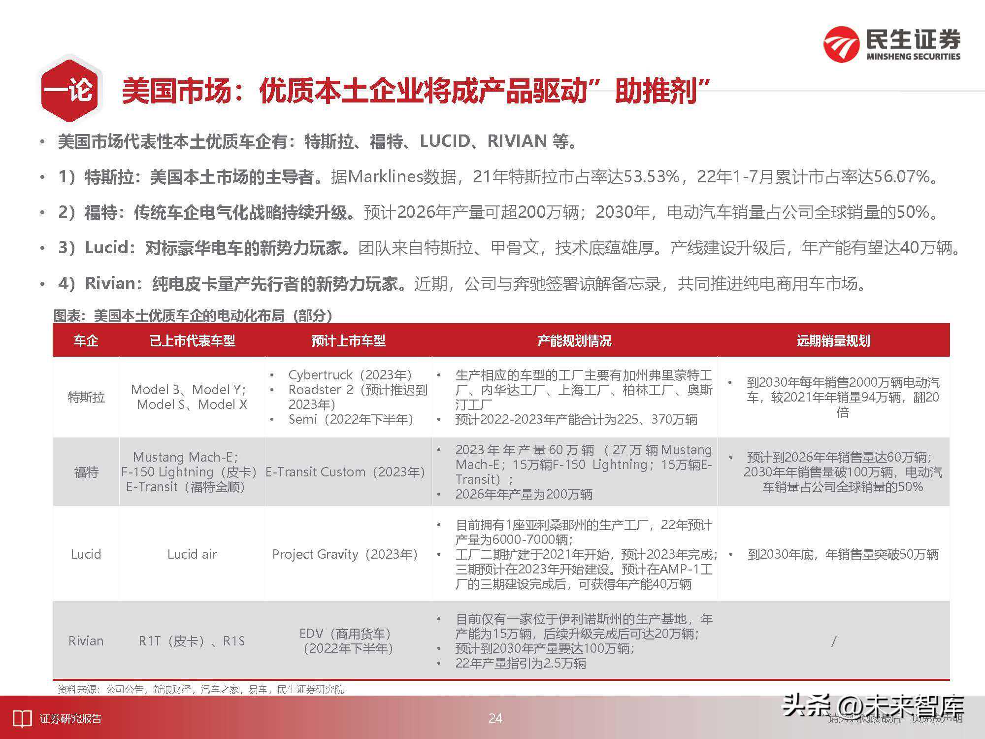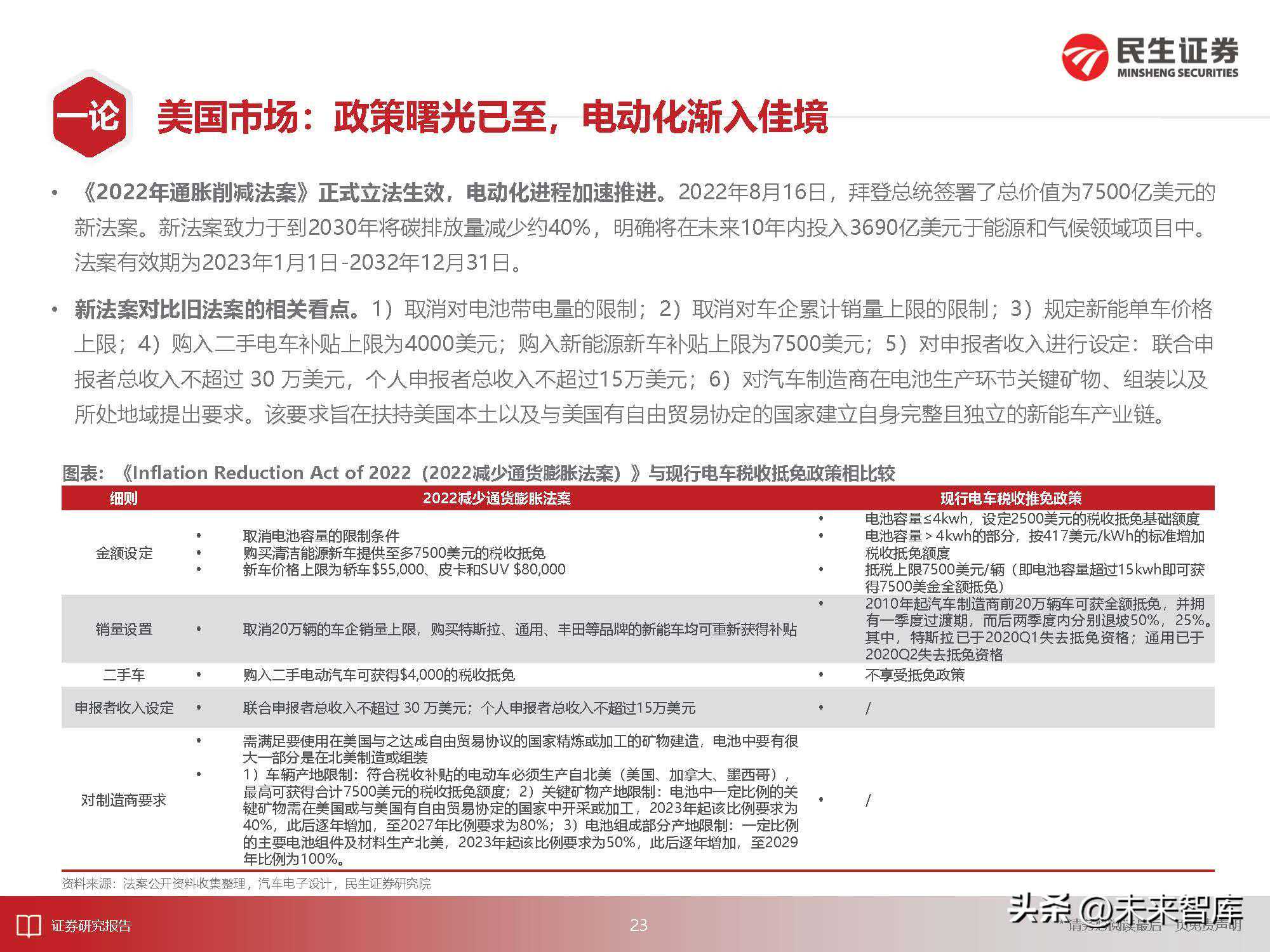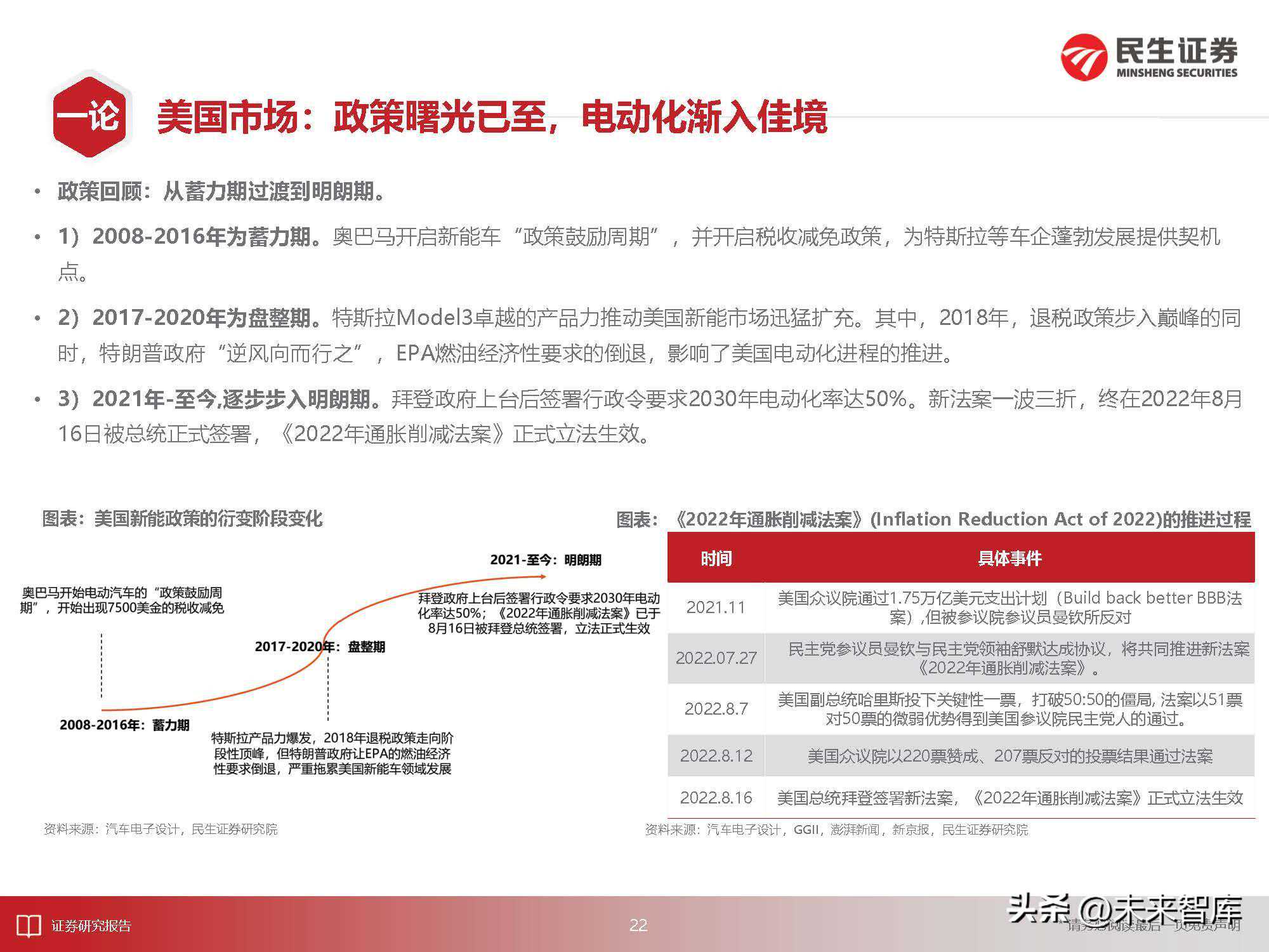 4)美国市场:现行核心驱动力为政策逐步明晰。21年新能车渗透率不足5%,22年1-7月累计销量对应的渗透率为6.76%。