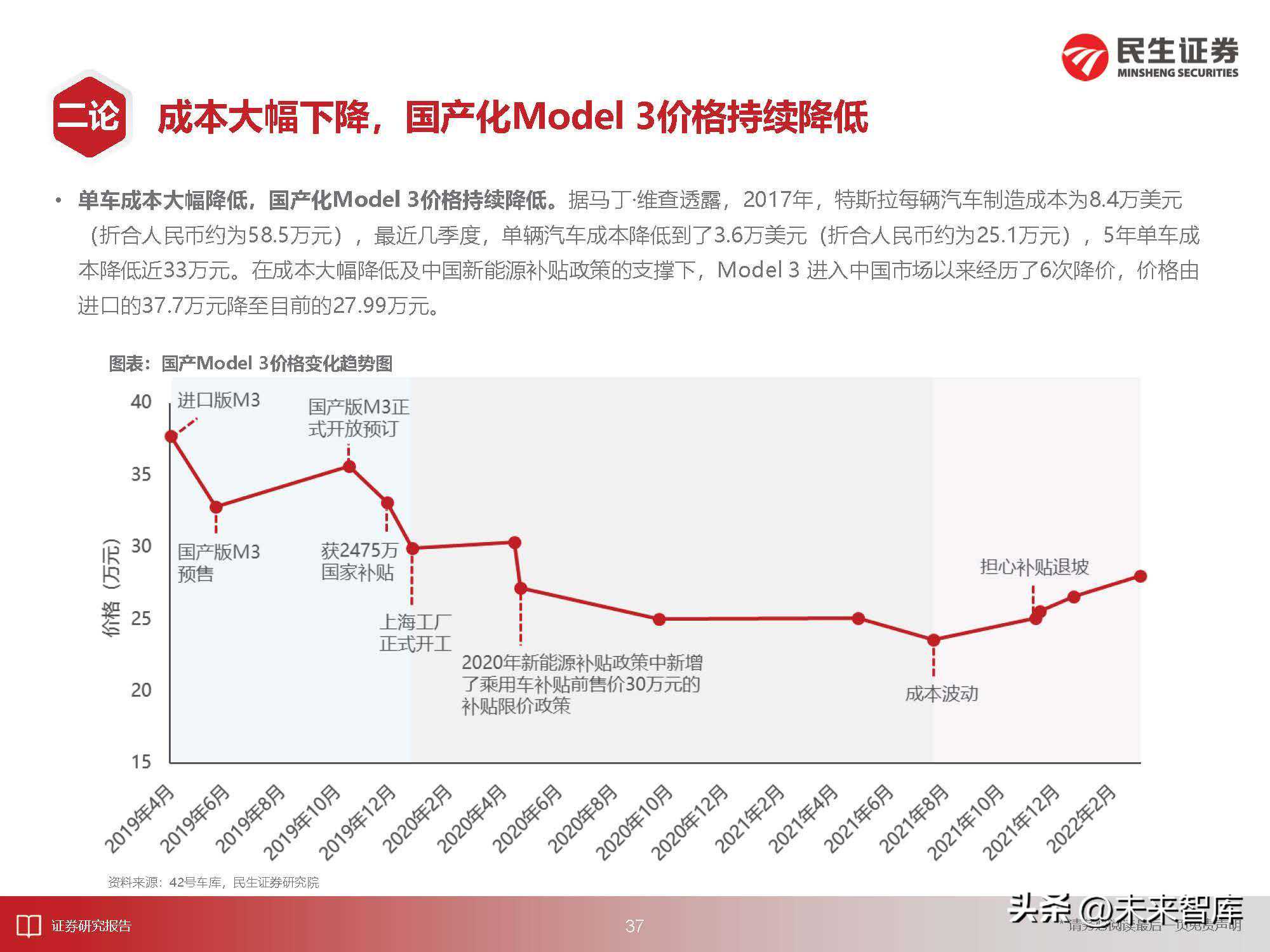成本大幅下降,国产化Model3价格持续降低
