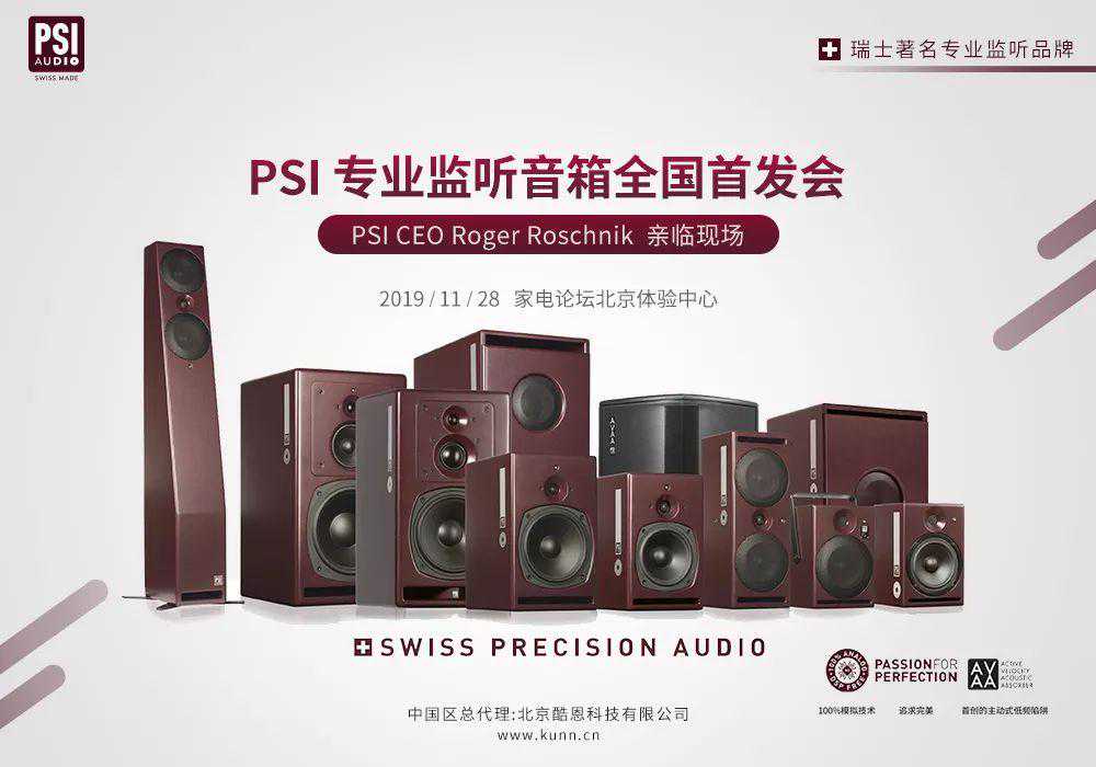 想亲身体验、了解一下PSI产品特性吗?机会来了!11月28日,PSI的中国总代理北京酷恩科技有限公司将在家电论坛北京线下体验中心举办一场PSI监听音箱全国首发品鉴会。本次活动,家电论坛除了全国首次现场演示PSI监听音箱A23音箱外,PSICEORogerRoschnik先生还将亲临活动现场,与大家分享PSI品牌故事以及交流监听音乐系统的相关知识。