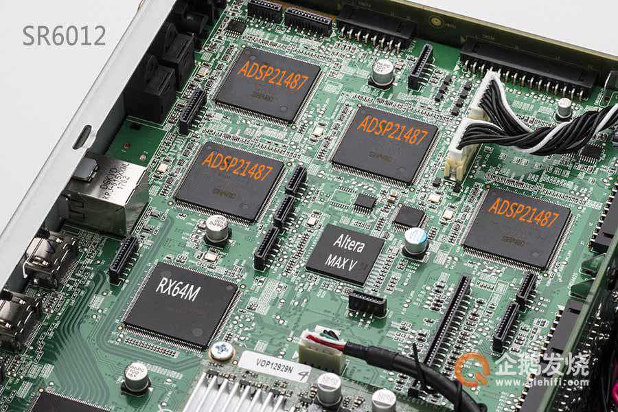 如图所示,SR5012采用的是一枚CS49844A芯片,单片4核;SR6012采用了4枚ADSP21487。我没有查到这两种芯片的具体参数,但可以确定的是4枚21487的运算能力远超一枚4核CS49844A。