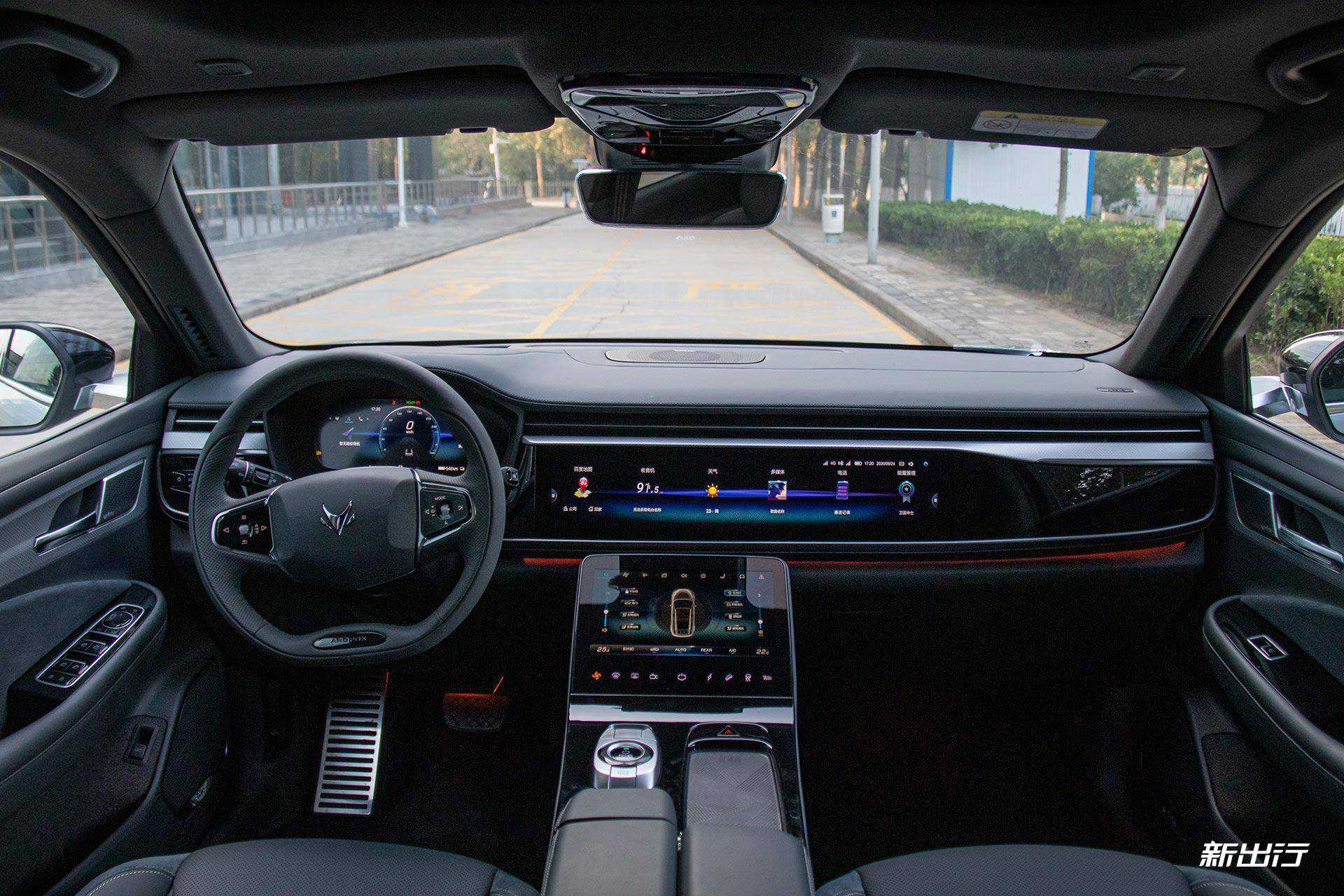我们这次试驾的车型为四驱版,车辆提供ECO和SPORT两种驾驶模式,尽管0-100km/h为4.8秒,但是ARCFOXαT前段还是调校得没那么激进,在1/3之后电机才开始发力,这时候强烈的推背感开始汹涌而至。