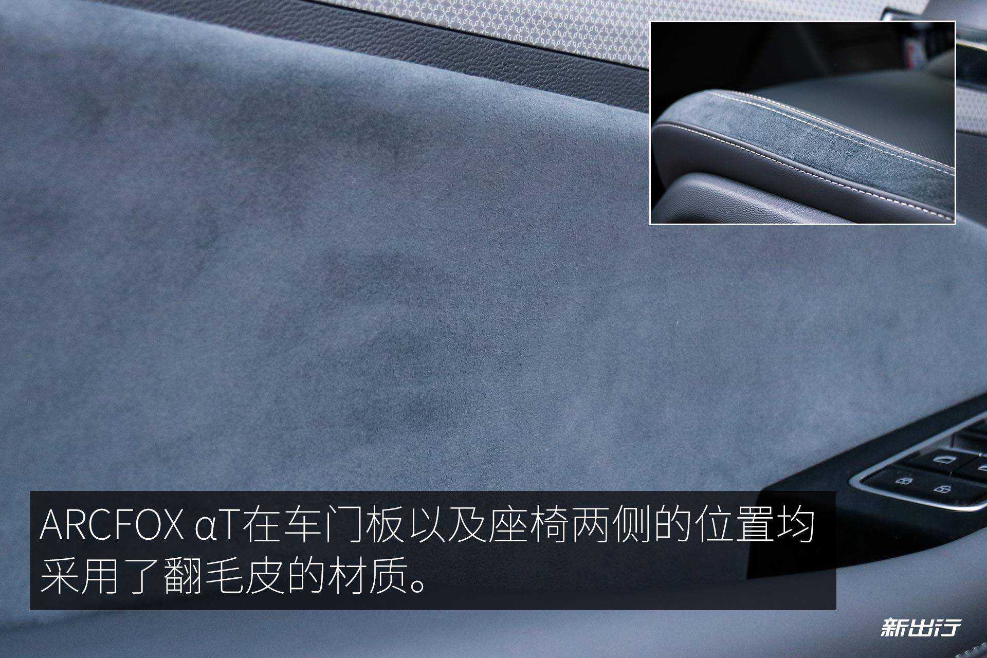 作为一款售价定为在30万左右的纯电动SUV,ARCFOXαT车内基本都是采用了皮质材质,中控大量采用了钢琴烤漆的饰板。除此之外在门板上以及座椅的两侧,还采用了翻毛皮的材质,进一步提升档次感。