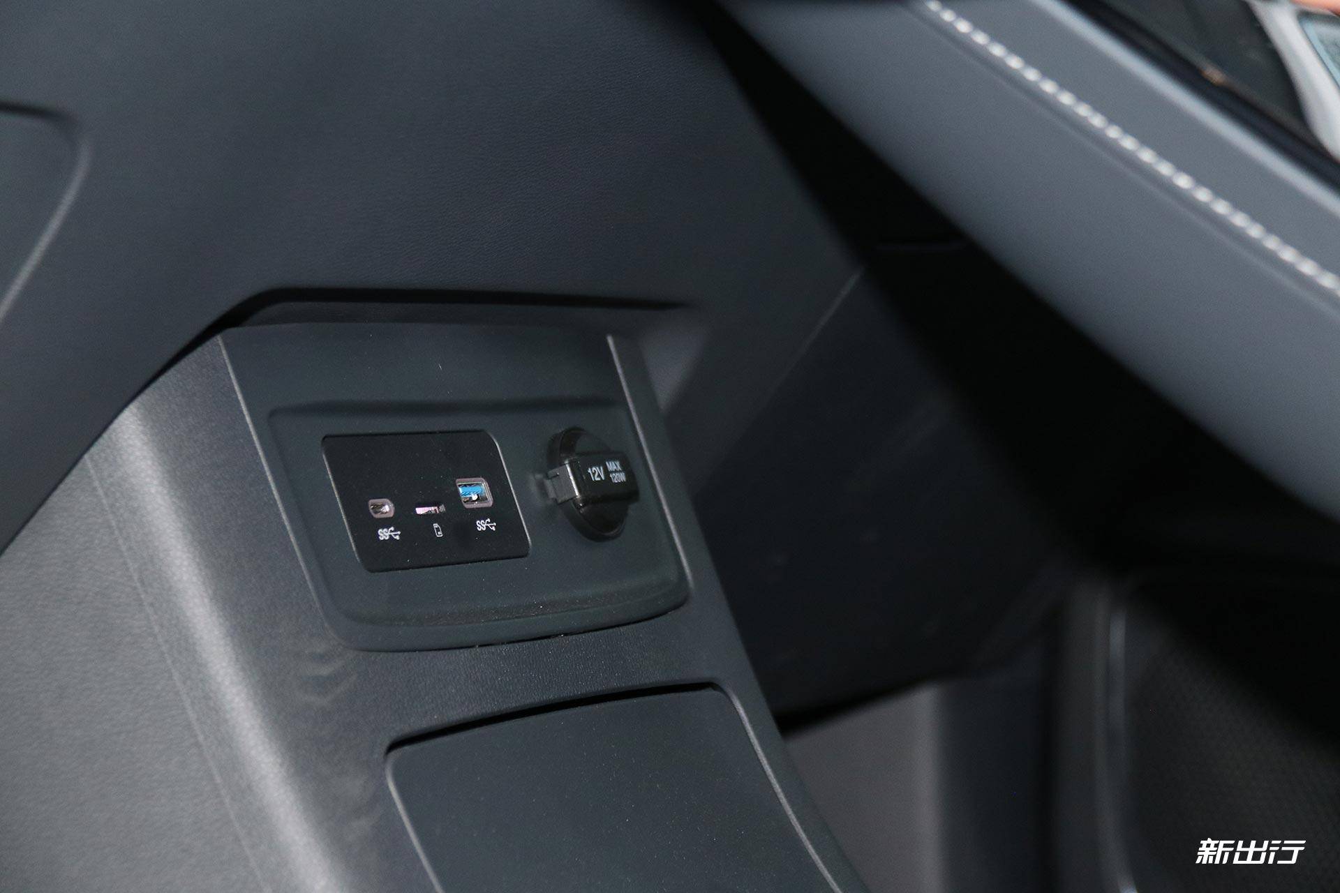 储物空间方面,类似的可放置手机的门把拉手、门板下方储物空间、双杯架、扶手箱和手套箱等常规的储物空间具有配备。同时,实拍车中控区域下方还采用了镂空的设计,除了有USB接口之外还有不错的储物空间。