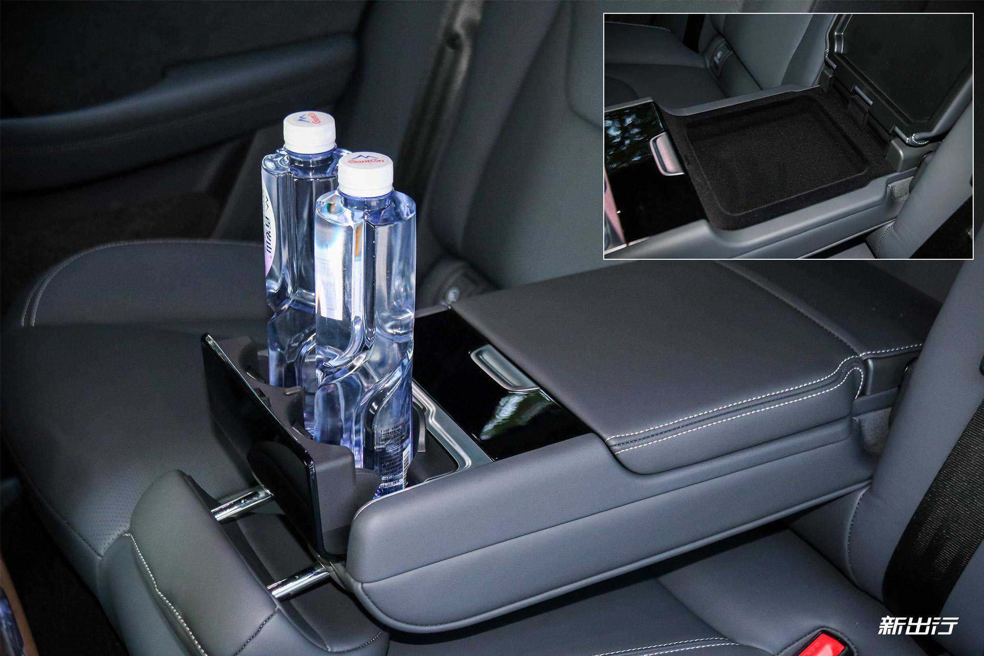 后排扶手放下后同样有两个杯架和一个植绒的小储物空间,放置饮料和手机等物品完全没问题。