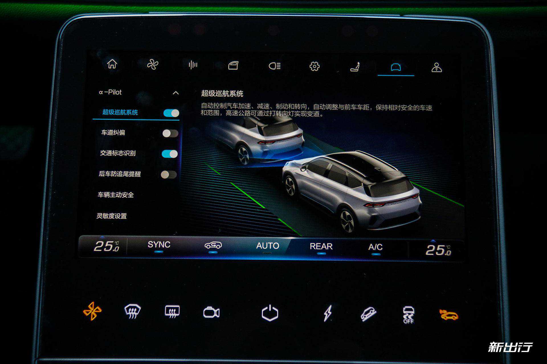最后值得一提的是ARCFOXαT还提供了HUD抬头显示,而且显示的信息也比较丰富。除了常规的时速之外,还可以显示导航、ADAS自动辅助驾驶等信息。