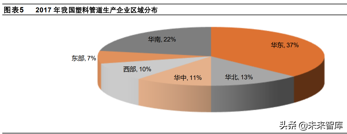 与水泥等传统建材类似,塑料管道具有区域性、季节性特征。塑料管道管内空、体积大,运输效率较低,尤其是大口径塑料管道,同时因大型市政工程产品需求单一、管道直接发至工地,无法通过套装进行运输,导致行业具有一定区域属性。伟星新材表示公司PPR等零售类小口径产品运输半径为1000公里左右、受运输成本影响不大,但工程类大口径产品如PE管运输半径一般仅500公里左右。目前塑料管道企业主要分布在浙江、山东和广东等地,头部企业一般通过在全国各地设立生产基地,解决运输半径问题。季节性特征体现在一季度为塑料管道销售淡季,主要因春节假期房屋装修需求小、北方天气寒冷影响施工。