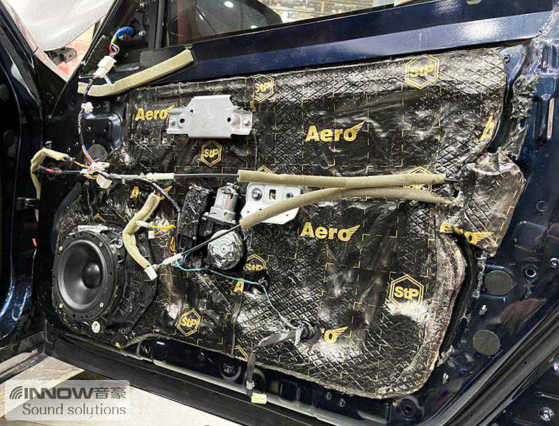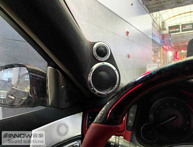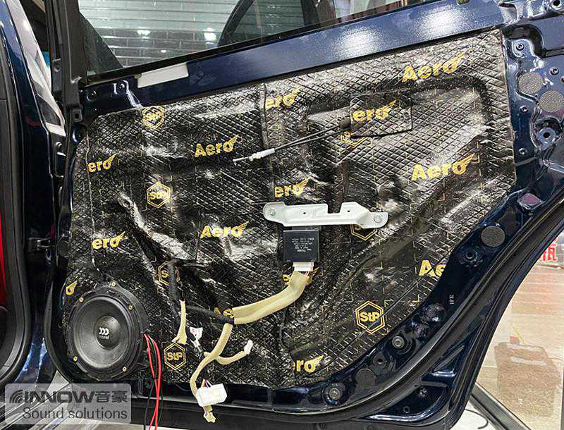在使用俄罗斯STP航空系列STP航空炸弹,对汽车的门板做完隔音处理之后,技师将汽车的前声场喇叭,升级成为以色列摩雷海碧丽三分频套装喇叭,这套喇叭层次感丰富,细节展现到位,尤其擅长对人声的诠释。经过声场定位以后,技师采用倒模安装工艺,将高音和中音单元,倒模安装在A柱,这可以将音乐做到中央,让前排乘客处于音乐之中。