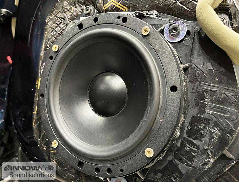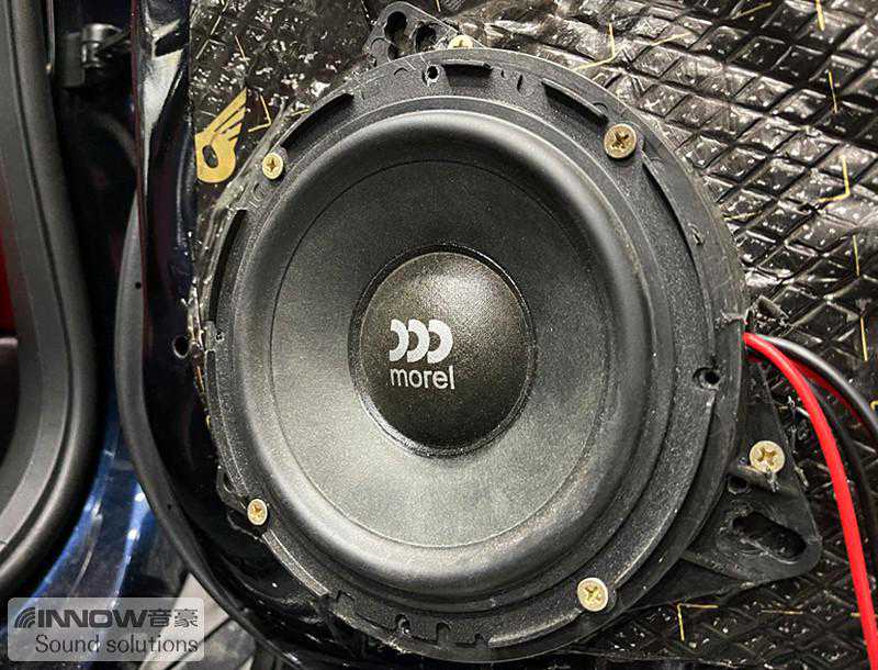 后排的音响升级也不可缺少。技师为车主选择的是一套以色列摩雷优特声602两分频套装喇叭,它的音质出色,性价比高,且能够与前声场形成音乐味道的统一性。经过声场定位,技师采用钻孔方式,将高音单元安装在门板饰盖上,将门板还原以后,丝毫看不出有任何违和感。