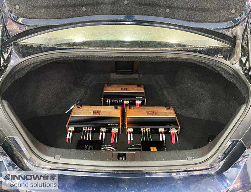 原车主机解析力较差,功率也很小,导致音频信号极差。所以技师将播放器更换成了歌航G3se,并辅以一台德国喜力士MK2dsppro进行音源的优化,使得音频信号更加完整干净。而为了保证喇叭的功率供给充足,技师还为前声场喇叭,添加了一台卡莱维尔帝黑金系列传真4S(FIDELITY4S)功放。