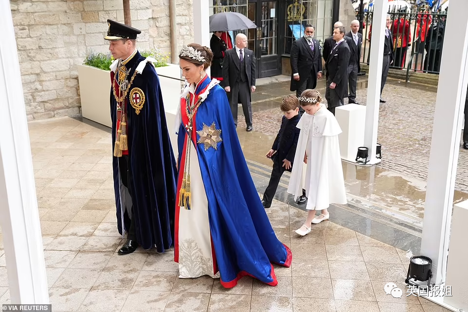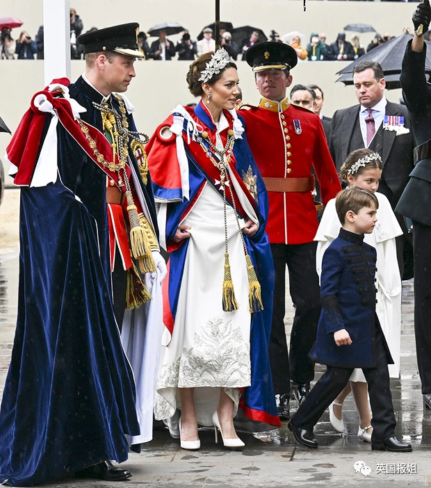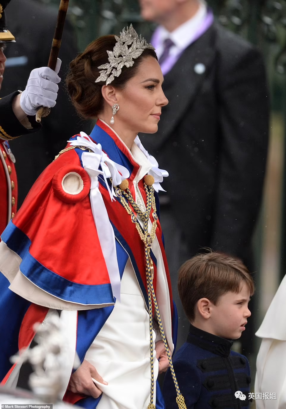再加上当天凯特威廉一家,到达加冕礼现场时迟到了一些。他们作为最后一组来宾到场,受到了媒体更大范围的拍摄和报道,凯特的头饰和耳坠也就更引人注目了。