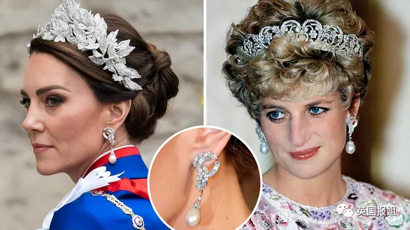 在卡米拉登基这天,凯特用头饰致敬女王,用耳坠致敬已故的婆婆戴安娜。