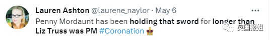 没想到在加冕礼上,她作为枢密院议长参与典礼为查尔斯运送国剑等宝剑,成为首个获此殊荣的女性。她在仪式中气度非凡,稳稳当当地举着重量约4公斤的宝剑,整整51分钟,眉头都没有皱一下。