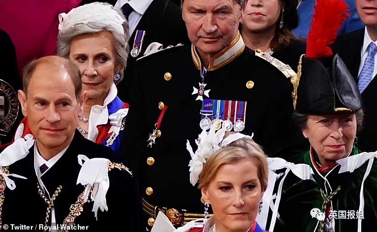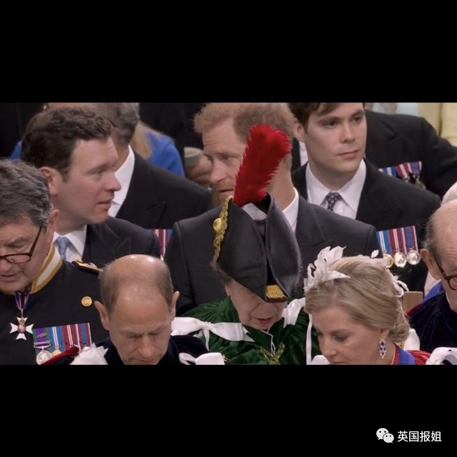 查尔斯当时把哈里安排在比较不重要的第四排已经够损的了,结果哈里还坐在安妮公主身后,网友笑称这很难让人不认为是故意在搞哈里。