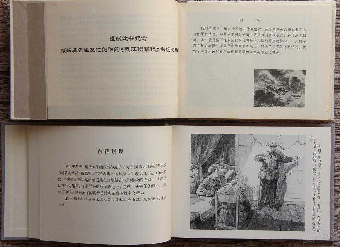 2012年上美推出《渡江》小精,这本可不得了,一图一文,所以他的画面特别大,甚至有的画面尺寸超过了大精!圆脊设计又很方便翻阅展平。
