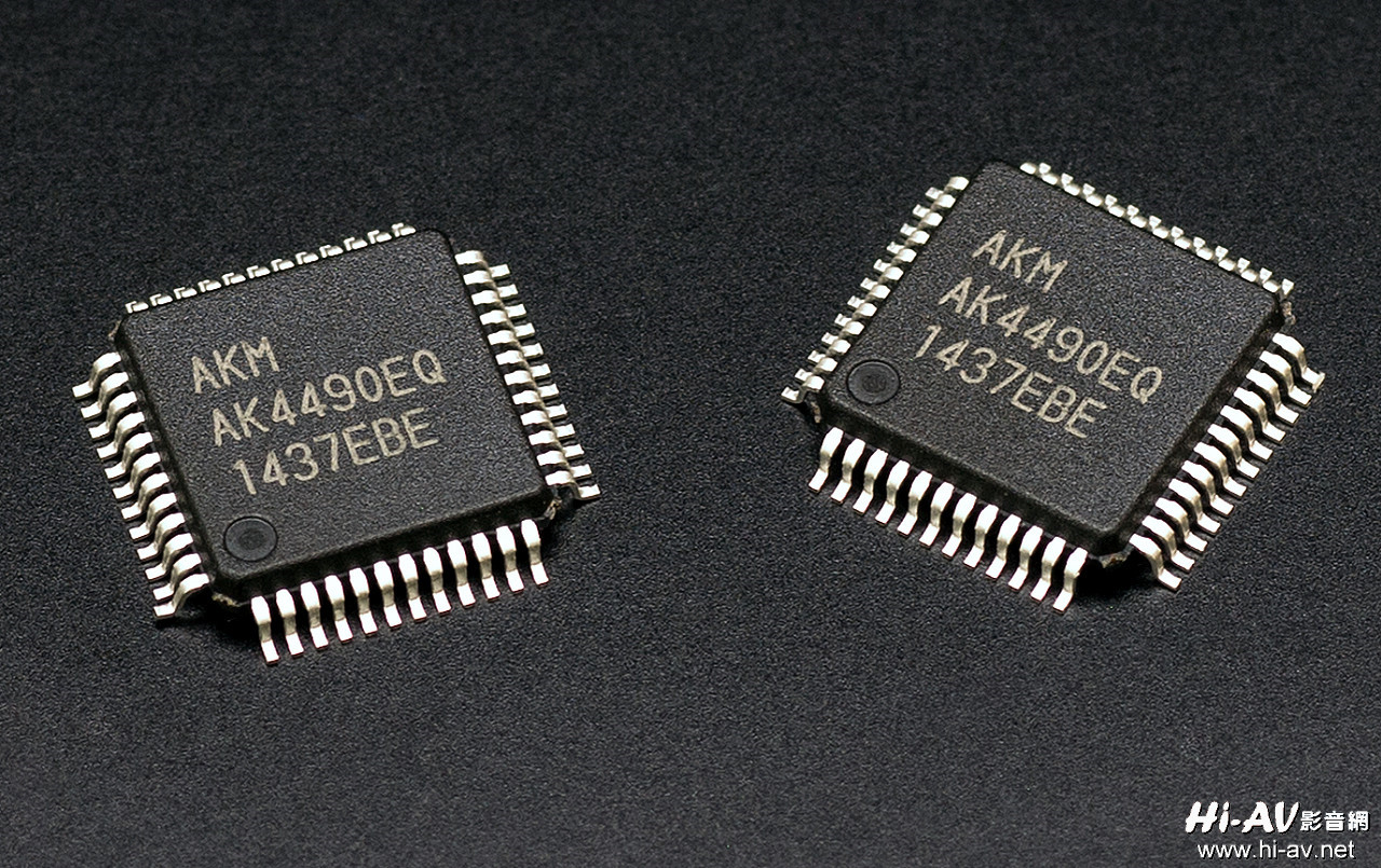 在背板数字电路主板下方的是数字模拟转换电路板,其面积比前旗舰X7200WA小得多,显然又是致力缩短信号传输路径长度的结果。DenonAVR-X8500H不同于许多高价机种使用8声道DAC芯片,而是与前代旗舰AVR-X7200WA一样用了高级「两声道」32bitDAC芯片(AKM旭化成AK4490),而且还由AVR-X7200WA的7枚再多增加了1枚,总共使用了8枚之多!AKMAK4490DAC芯片有多高级?它可对应768kHz/32bitPCM与11.2MHzDSD数字音频的数字模拟转换,同时还具备超低谐波失真(-112dB)与高讯噪比(120dB)之优异特性。此AKMAK4490芯片连Esoteric「次旗舰」数字模拟转换器D-02X与高阶SACD/CD唱盘K-05X都以其为DAC核心,可见其数字模拟转换性能之优异,而且EsotericK-05X只使用了4枚AKMAK4490,身价只有其数分之一的DenonAVR-X8500H却一举配备了多达8枚,包括超低音在内的所有声道都以AKMAK4490做数字模拟转换,无疑是当前所有环绕扩大机DAC部分最强悍者。