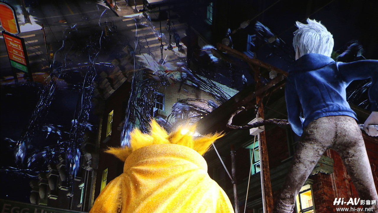 在Auro-3D官网页面下方的「Blu-raysinAuro-3D」区块显示了市面上所出版具备Auro-3D音效的BD与4KUHDBD片,但电影类在年初我们评测DenonAVR-X6400H之后并没有新增的4KUHDBD(仅有少数几张电影BD),因此还是只能用当时的那几张Auro-3D光盘来评测本机的Auro-3D音效。上图所见是Auro-3D示范BD里的《捍卫联盟》(RiseoftheGuardians)片段,收录在示范片上的Auro-3D音轨为11.1声道格式,采用对应的DenonAVR-X8500H来播放时,显然比年初时评测DenonAVR-X6400H的声道有更好的三度空间感。