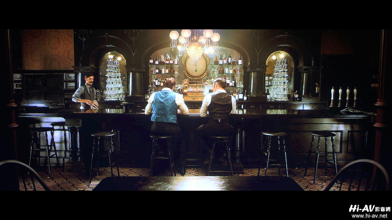 巴纳姆在酒吧邀约卡莱尔入股的片段也很精彩,一开始酒吧内其他客人离开后,整场戏就只有他们两人与酒保的互动,不但有对话还有动静有致的歌舞演出,除了跳上跳下的音效高低位置差异,甚至酒保在台面上推动酒杯或拿起扫把快速刷地的音效都历历在目——过人的声场背景透明度与声音细节刻画、动态起伏描绘,确实是DenonAVR-X8500H非常强悍之处。