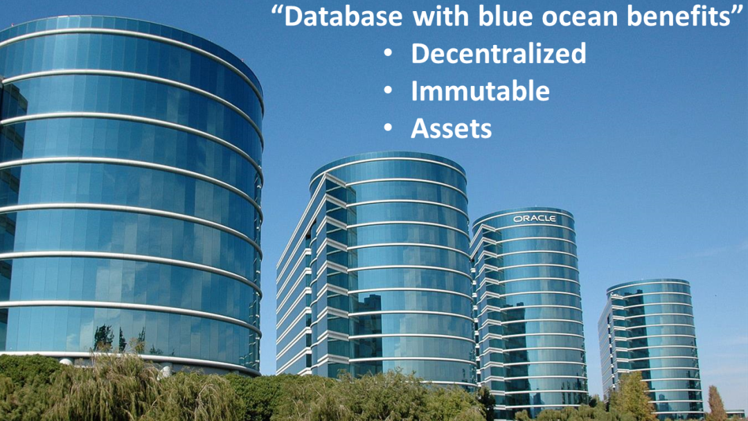 “具有蓝海优势的数据库”“区块链”另一个更高层次的表述是:具备去中心化、不可篡改和具有资产属性等蓝海【6】优势的数据库。