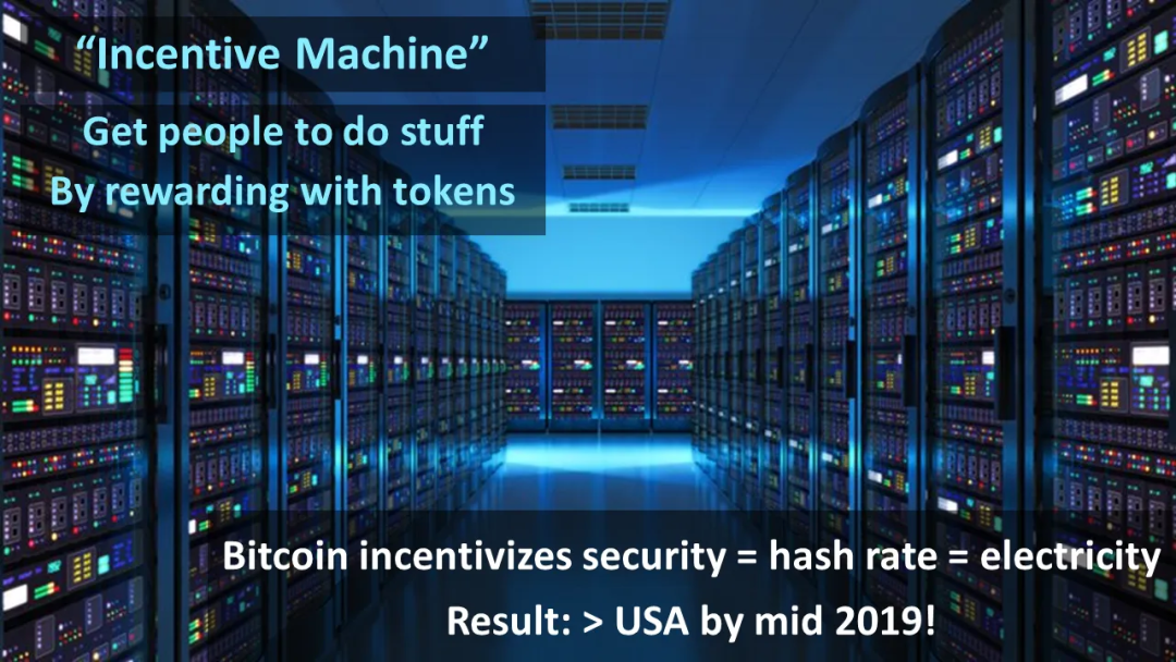 比特币的激励机制效果如何?非常惊人。它的能耗超过了大多数小国家,并有望在2019年中期之前使用的电力超过整个美国。(注:原文写于2018年)。现在,你可能会认为:这太可怕了!我同意,这一点是可怕的。然而,现在有比比特币更高效的区块链技术,所以请不要基于比特币的低效率来否定区块链。我的观点在于,展示区块链作为激励机器的惊人威力。